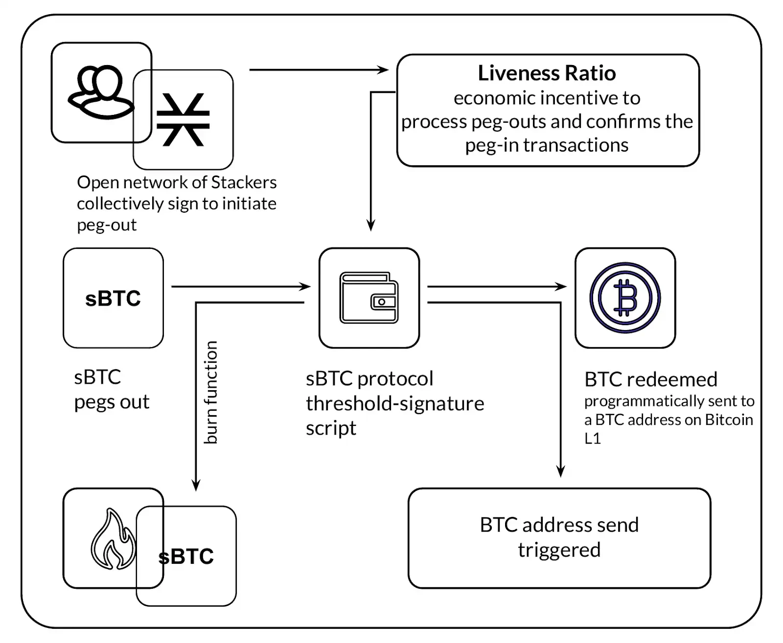 然后,超过 70% 的栈押者必须集体签名以销毁 sBTC,并以编程方式将相应的原生 BTC 发送回用户的 BTC 地址。此过程最多可能需要 24 小时。