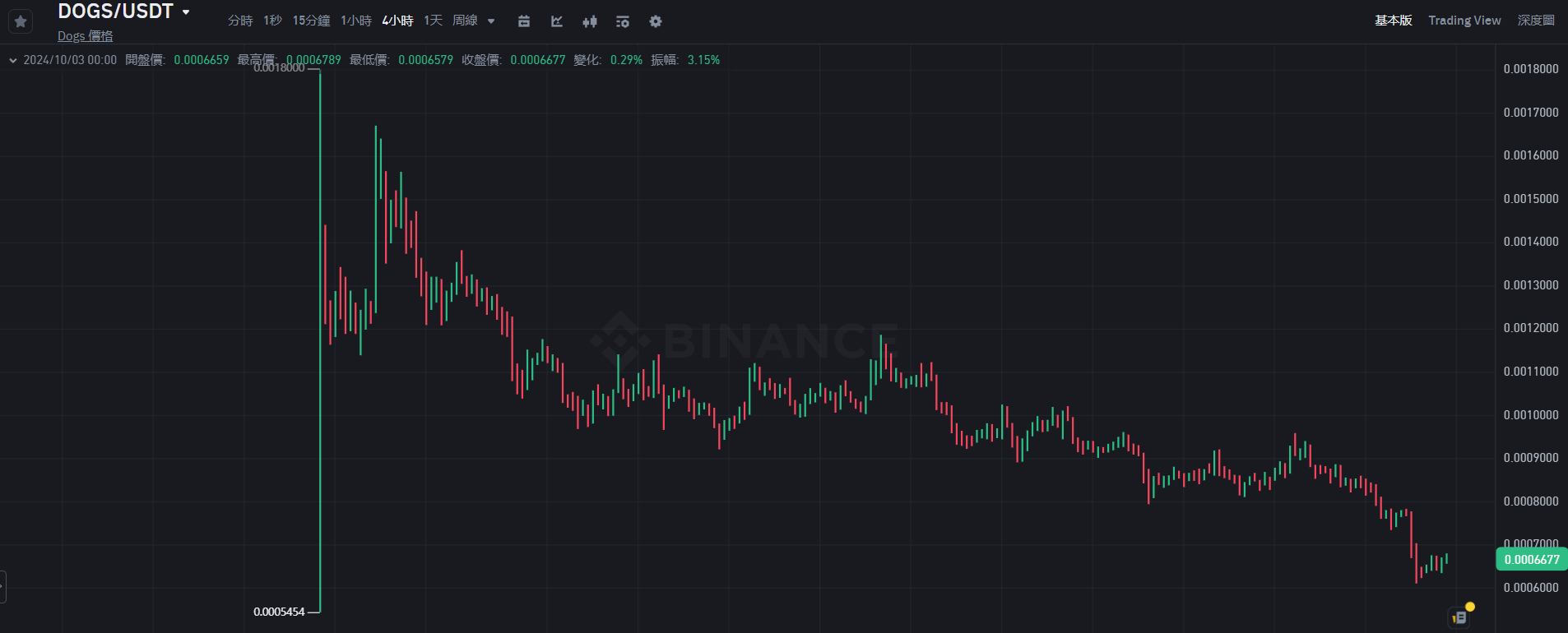 根据 币安 数据显示,DOGS 于 8 月 26 日正式登陆币安,𫔭盘价为 0.0005454 美元,𫔭盘 1 小时后冲上历史最高价 0.0018 美元,随后出现下跌,仅在上市第三天(8 月 28 日)出现反弹,随后持续下跌,撰稿当下币价报 0.000666 美元,近 1 个月跌幅高达 41.5%。