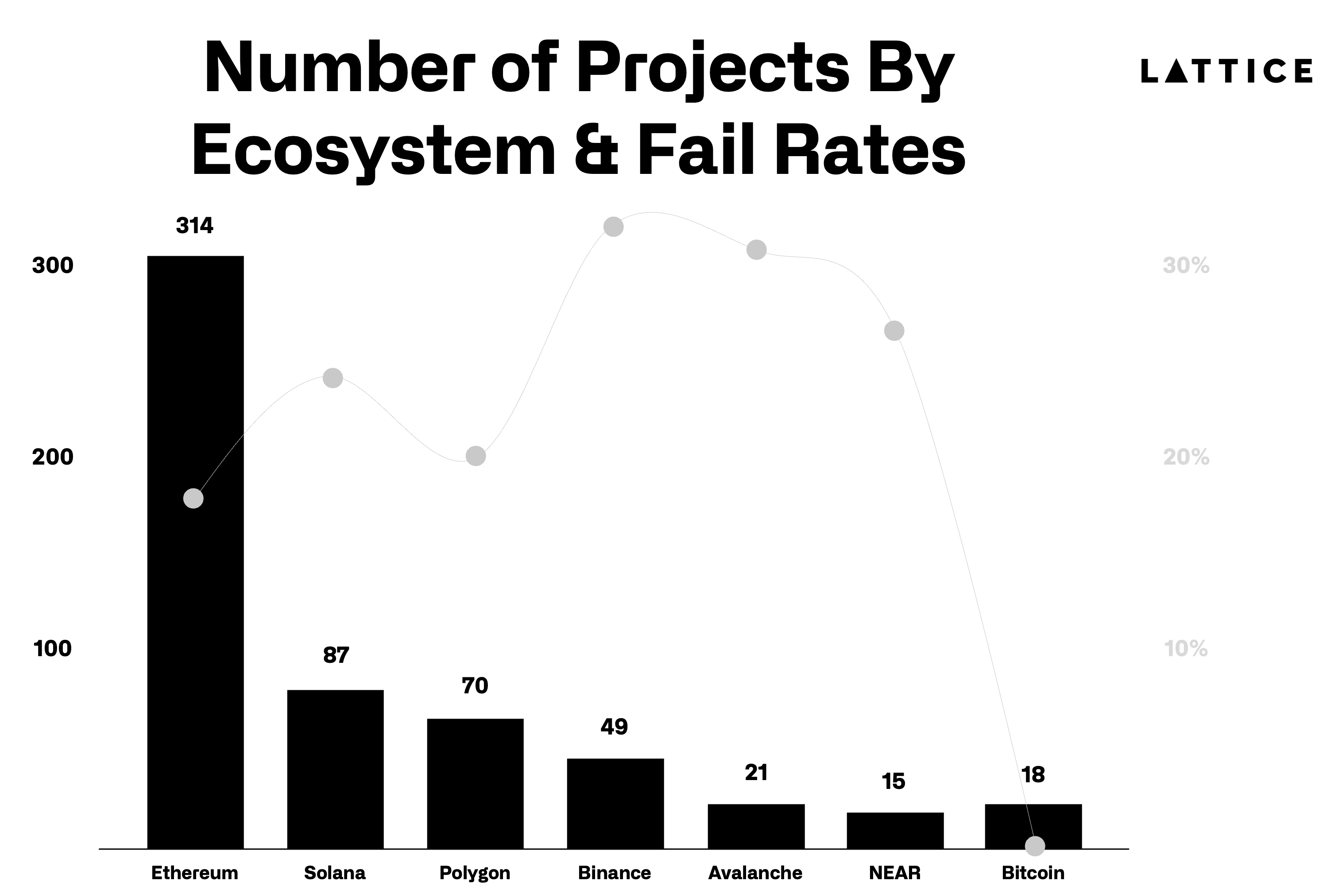 统计1200+项目:以太坊生态失败率20%小赢Solana,创投最爱比特币网路