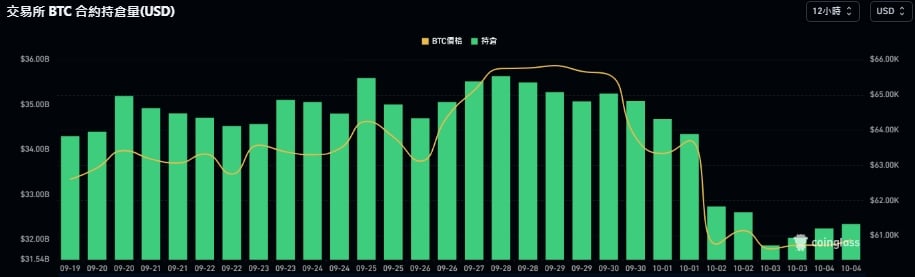 根据 数据 ,比特币交易所内合约持仓量在本周内呈现稳定的下跌趋势,从 35.5 亿美元 下降至 32.3 亿美元 ,可能与市场之前快速下杀至六万美元,多头遭清算有关。