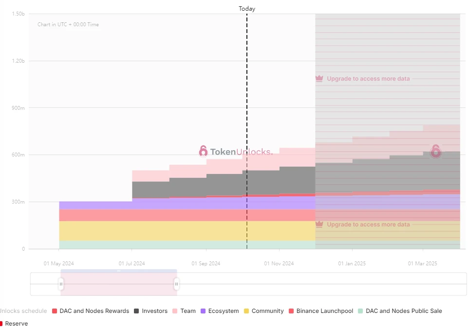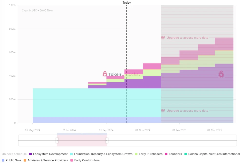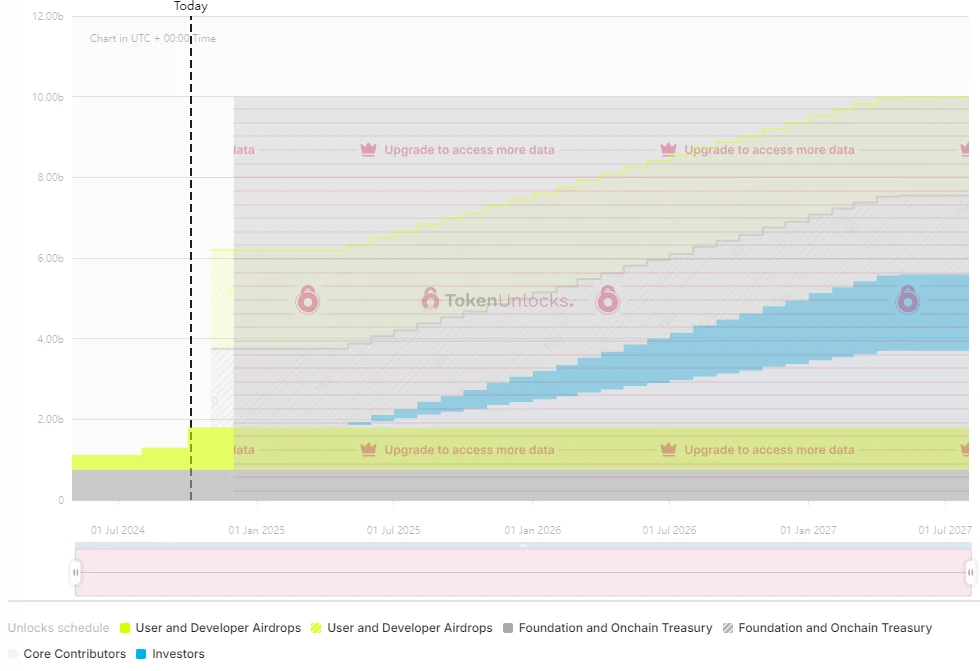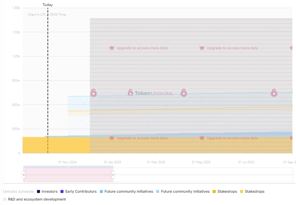MODE 迎来一次关键的 Cliff 解锁,全部为“用户和发展空投”,共 5 亿枚,价值约 561 万美元。