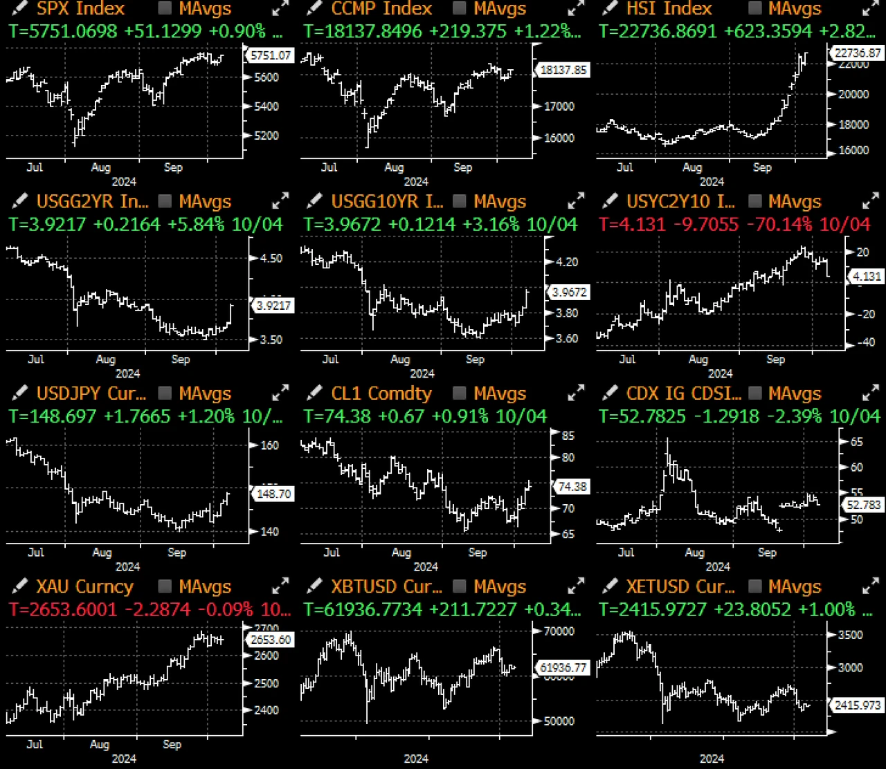 不出所料,全球股市又度过了强劲的一周,大多数指数都上涨,科技股表现尤为突出。强劲的经济数据、友好的央行政策,甚至美国码头工人罢工的及时停止,都让投资者有充分的理由继续保持风险偏好的态度。此外,创纪录的 14 亿美元资金通过 FXI ETF 流向中国资产,加剧了这个全球第二大经济体的狂热情绪,进一步推动了风险资产的上涨。