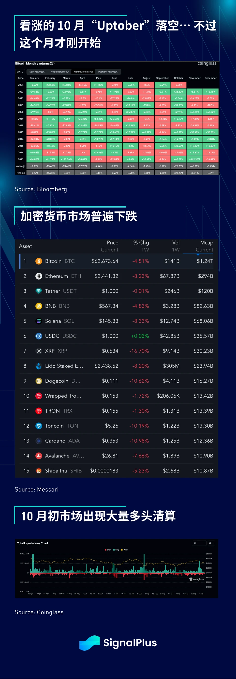 当宏观市场在庆祝新的高点和软著陆情景时,加密货币却表现不佳,迎来了自 2019 年以来最差的 10 月开局,BTC 月初低至 6 万美元,其他 altcoins 的表现也相去不远(周跌幅达 10% ),一些本地的 FOMO 情绪似乎不敌 A 股的强劲涨势,根据 Coinglass 的数据, 10 月的前几天,近 5 亿美元的加密货币多头期货遭到清算。