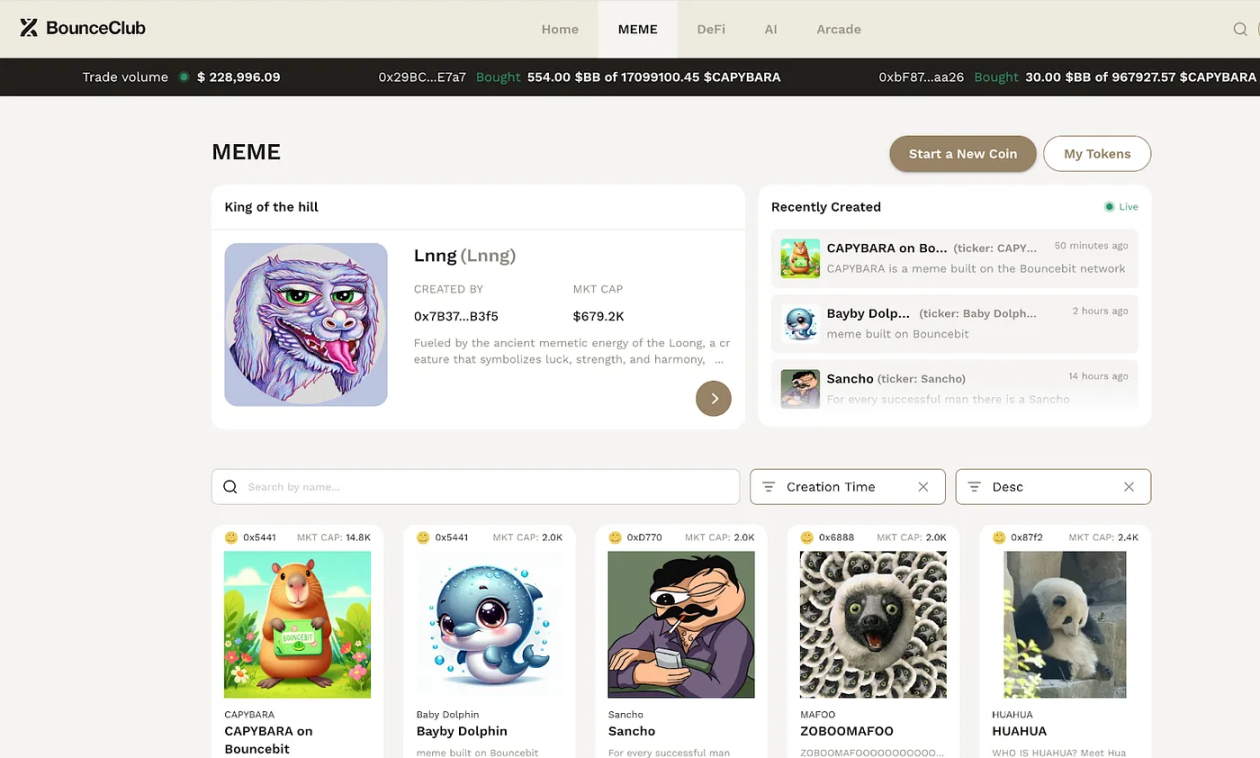 BounceBit 是 BTC 原生再质押链,主要为不同的再质押产品提供基础层。BounceBit Club 是 BounceBit Chain 上的生态系统。它集成了交易、AI、GameFi、DeFi Farm 等元素。同时也提供 Memecoin 的创建和发行。相比于其他发行平台,BounceBit Club 上的 Memecoin 发行平台则更系统更简洁。同时,BounceClub 还宣布将加入现有的 Memecoin 社区,来促进 BounceBit 原生 Memecoin 的发展,其发射阶段采用与 Pump.fun 类似的 Bonding curve,市值达到 72000 个 BB 后将加池子,销毁全部 LP 底池。