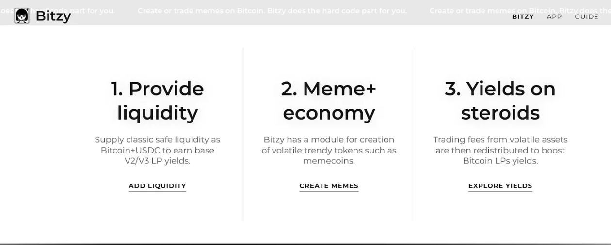 Botanix 是比特币上去中心化的 2 层 EVM,将比特币的安全性和去中心化与 EVM 的易用性和多功能性结合,目前已经上线测试网。该生态的 Meme 发行平台是 Bitzy.app,其宣称「点击两次和零代码」创建代币,有一定空投预期。