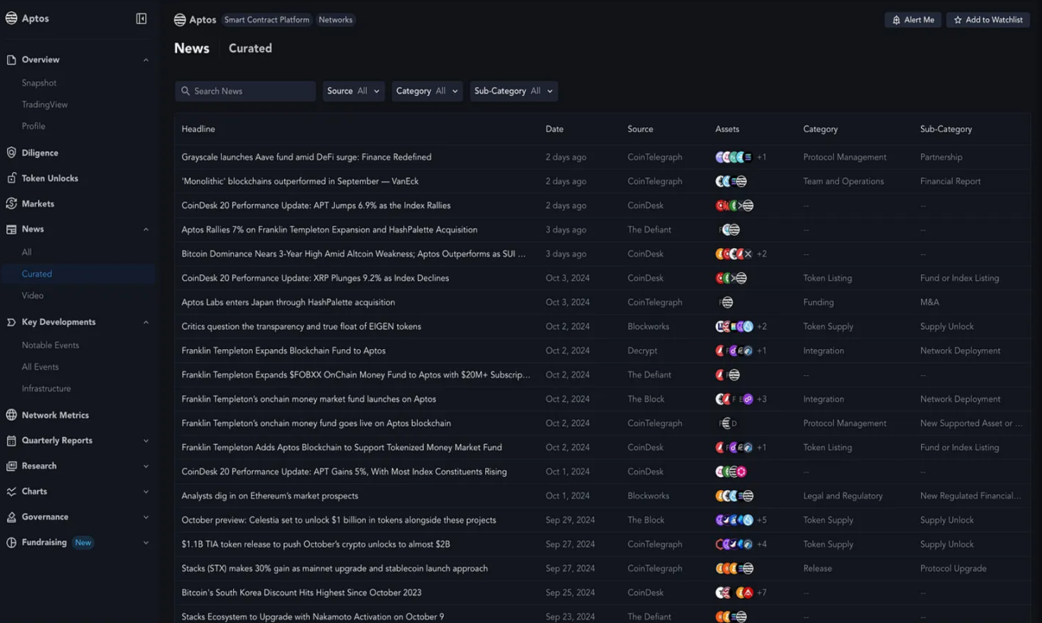 Aptos:Messari 上的最新新闻仪表盘。