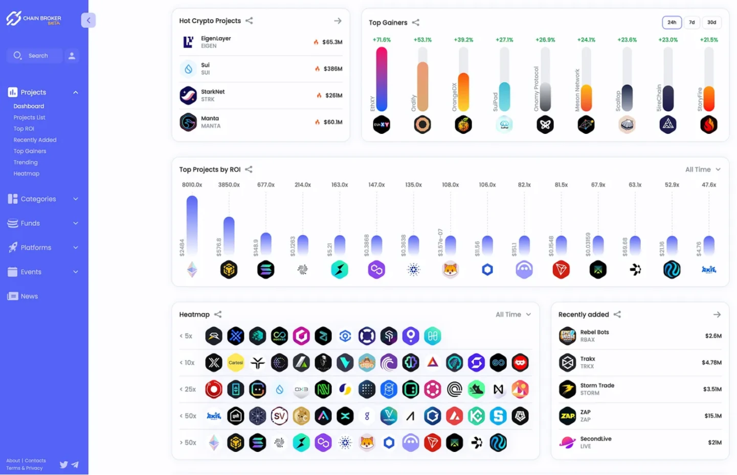 ChainBroker 是一个旨在跟踪网络和 Token 各种金融指标的服务。它使用户能够分析市场状况、投资者活动和平台参与度。该网站还在某些类别中提供热力图,提供对网络和资产在一段时间内或特定时期潜力的视觉评估。