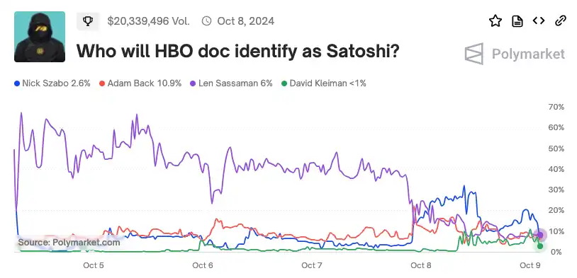 正如这部纪录片导演 Hoback 说的那样,大家对「谁是中本聪」的打赌,让这个话题更热了,polymarket 上的赌注池子已经累计到了 2000 万美元。Hoback 坐在电脑前,不断的手动刷新投注池,看着池子里的赌注越来越多,虽然他保证自己不会参与其中赚取赌注,但这部纪录片无疑让他在电影界的名气又提升了不少。