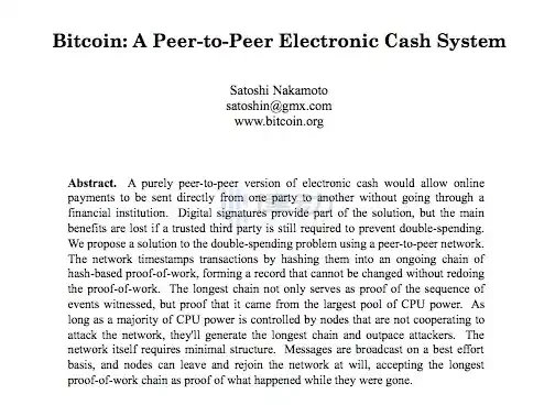 雷曼破产的三个月后,一份署名中本聪的论文被发表在网络上,其标题为《比特币:一种点对点的电子现金系统》,论文中详细描述了如何使用对等网络来创造一种「不需依赖信任的电子交易系统」。比特币就此诞生了。