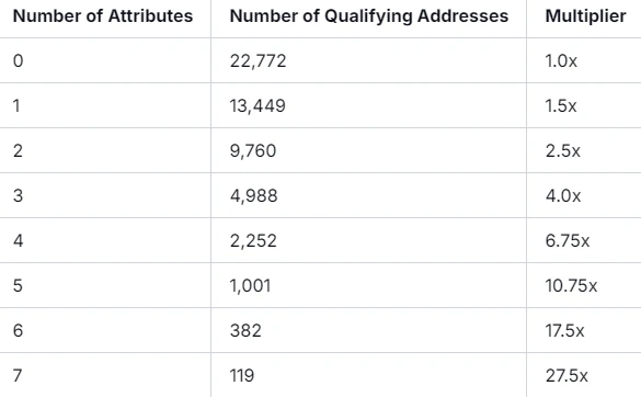 Frequent User:在 2024 年 3 月 15 日至 2024 年 9 月 15 日的资格期限内,在 ≥ 20 个不同的星期内,每周至少进行 10 次应用程序交易,共 9,841 个独立地址满足条件;