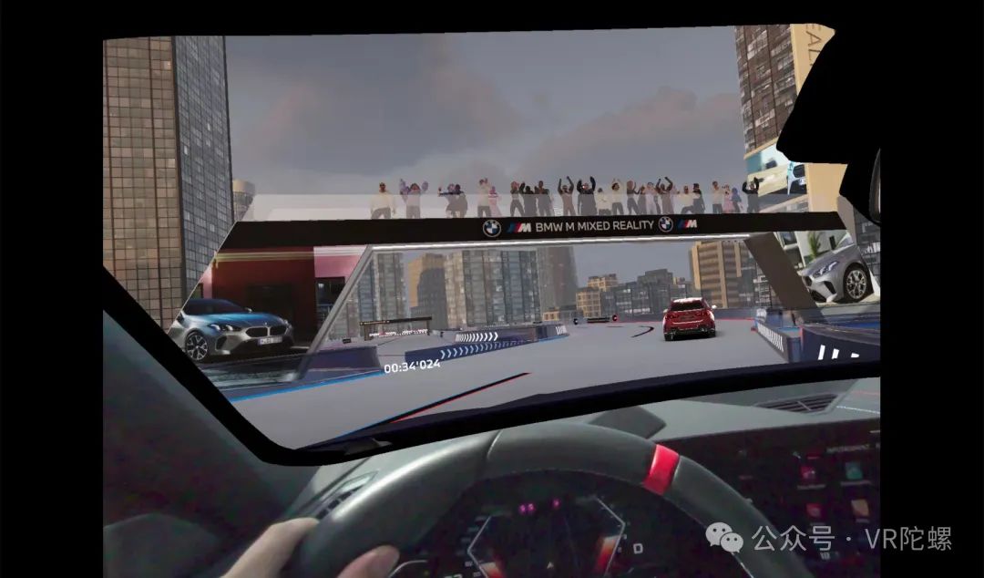 宝马结合MR技术推出了多感官多人游戏模式:游戏中,玩家通过一次秘密任务进入了BMW M车库,登上屋顶赛道后,两位“BMW M MR”用户就可以在多人模式下进行虚拟对战,躲避障碍并收集虚拟硬币。