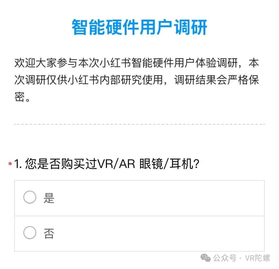 小红书开展XR硬件用户调研,或为XR版本上线做准备