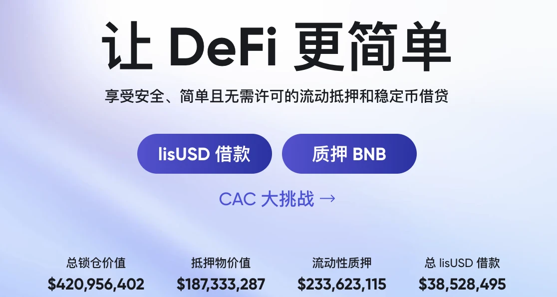 同时,为了再进一步提高用户 BNB 的资本效用和收益,Lista DAO 参与构建了专为 CeFi BNB 和 DeFi BNB 用户设计的一站式链上质押平台 BNB.xyz,该平台核心贡献者还包括 PancakeSwap 和 BNB Chain。