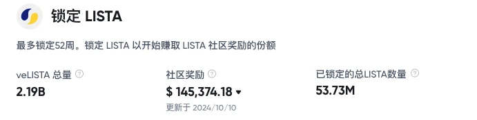 锁定 LISTA 不仅使代币持有者与 Lista DAO 形成利益绑定,进而减少了 LISTA 二级市场抛压,而且在治理方面赋予社区的投票权也能使代币持有者一定程度上维护自身利益。