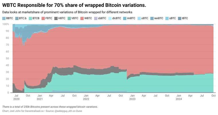 下图展示了我们今天对比特币包装的各种变化。其中许多是在 DeFi 夏天期间铸造的,以便使用比特币在以太坊上创造收益。