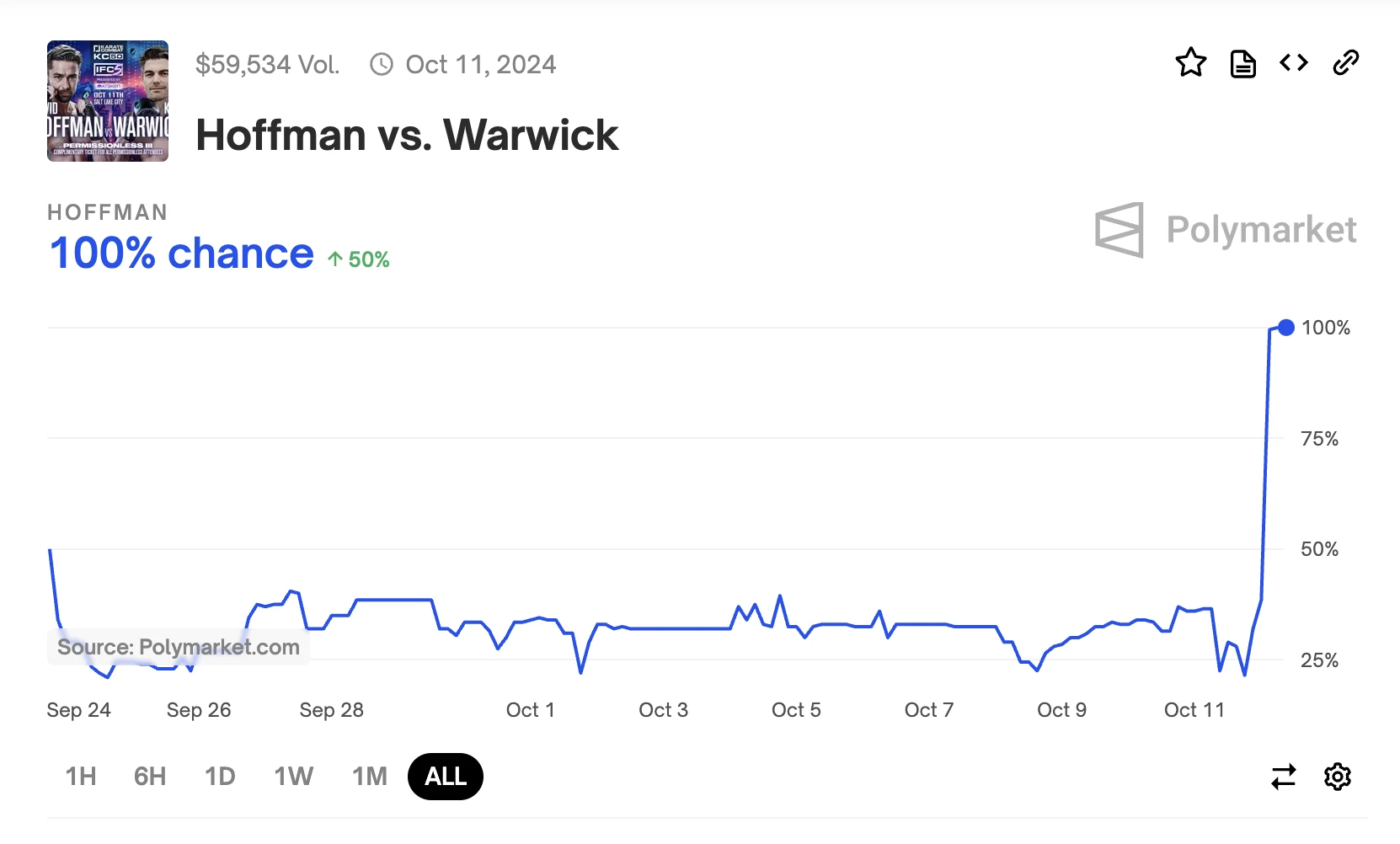 从历史数据来看,常年打造“格斗狂人”人设的 Kain Warwick 的赔率持续领先,赛前预测胜率持续高于六成。