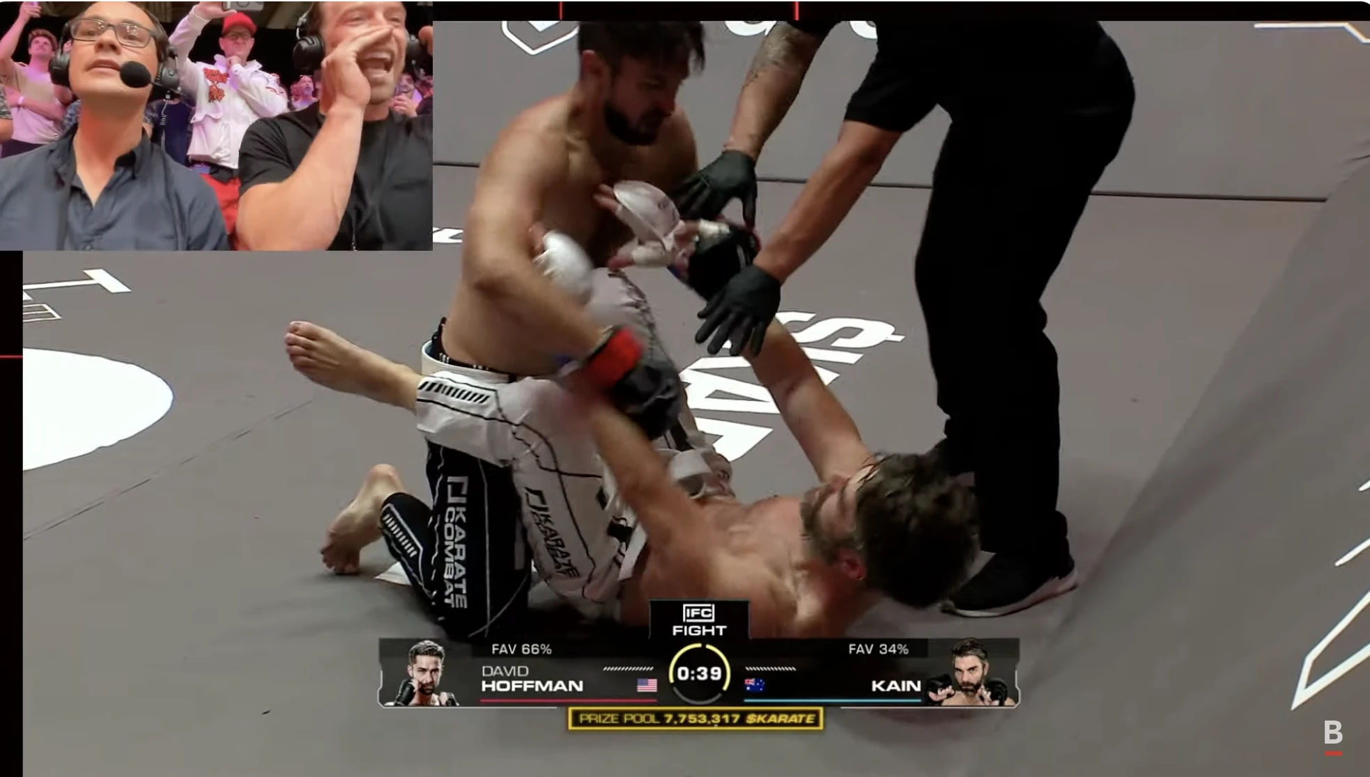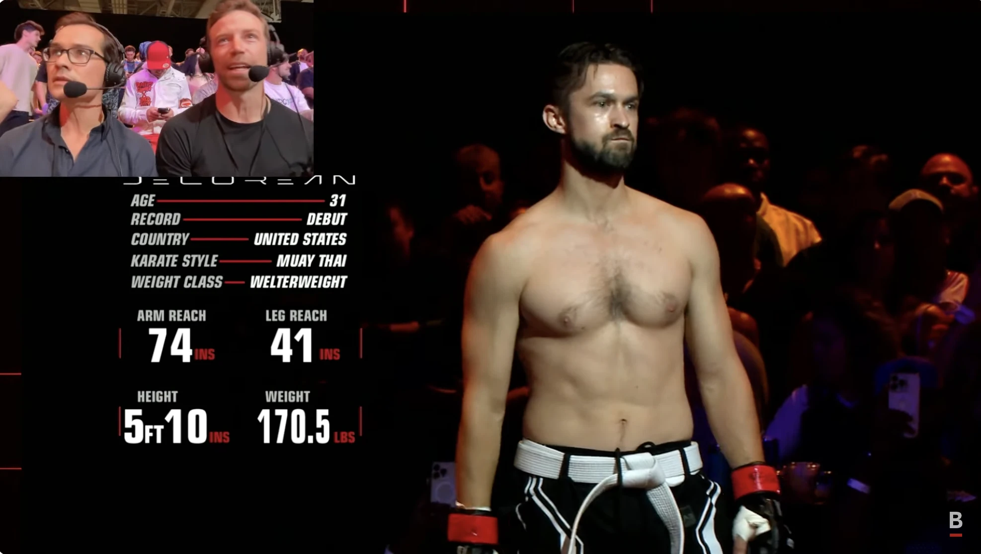 北京时间 10: 40 左右,格斗双方相继出场,从选手数据及赛场声浪来看,Kain 的身形明显更大一号,但 David 却人气更高。