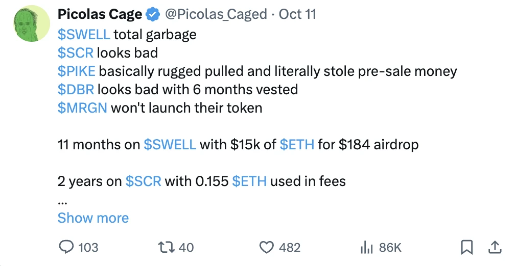 高 FDV 代币的推出给新买家留下的空间很小,标志着积分机制的衰落。