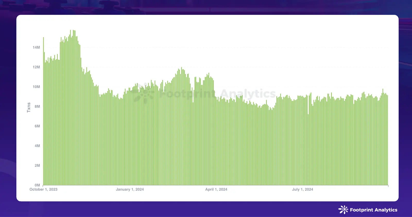 交易指标也显示出改善,区块链游戏的平均每日交易量达到了 910 万笔,较 8 月小幅增长了 2.5%。
