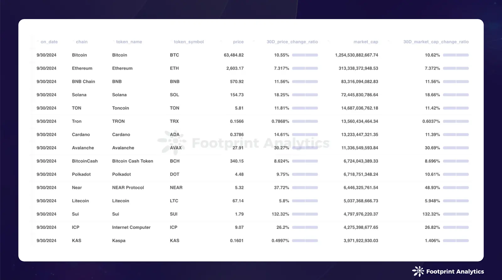 数据来源: 2024 年 9 月底公链代币价格和市值