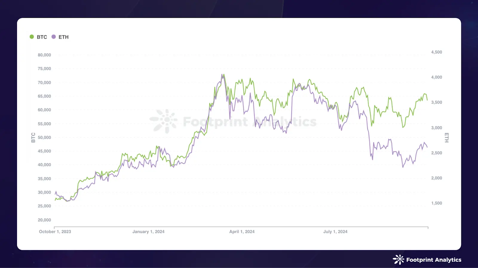 加密市场在 9 月份展现了强劲的表现。 比特币 以 57,429 美元开盘,月末收于 63,485 美元,实现了 10.5% 的涨幅。而以太坊虽然表现积极,但仍然不及比特币。 以太币 从 2,426 美元起步,最终以 2,603 美元结束,涨幅为 7.3%。值得注意的是,9 月中旬 ETH/BTC 的价格比创下了 0.0386 的新周期低点。