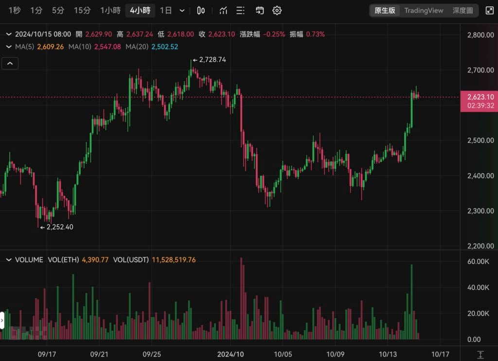 以太坊部分,ETH 也在相同时间突破 2,600 美元,撰稿当下报 2,623 美元,近 24 小时跳涨 6.07%。