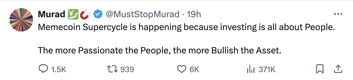 加密 KOL 当红炸子鸡 Murad:「这是属于 Meme 币的超级周期」