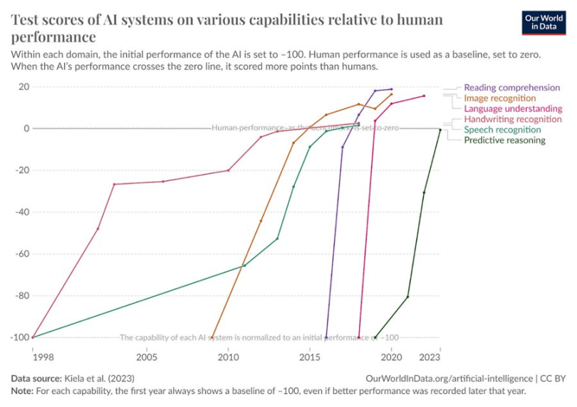 AI 在人类行为各维度的测试分数增长