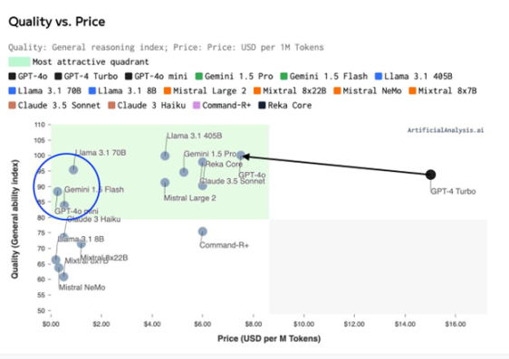 然而,事实证明, AI 领域的护城河比 Web2 网络效应更浅,领先的前沿模型相对于该领域而言迅速贬值,尤其是 Meta 公司采取「焦土政策」,投入数百亿美元开发的 Llama 3.1 等开源前沿模型,其性能达到了 SOTA 水平。