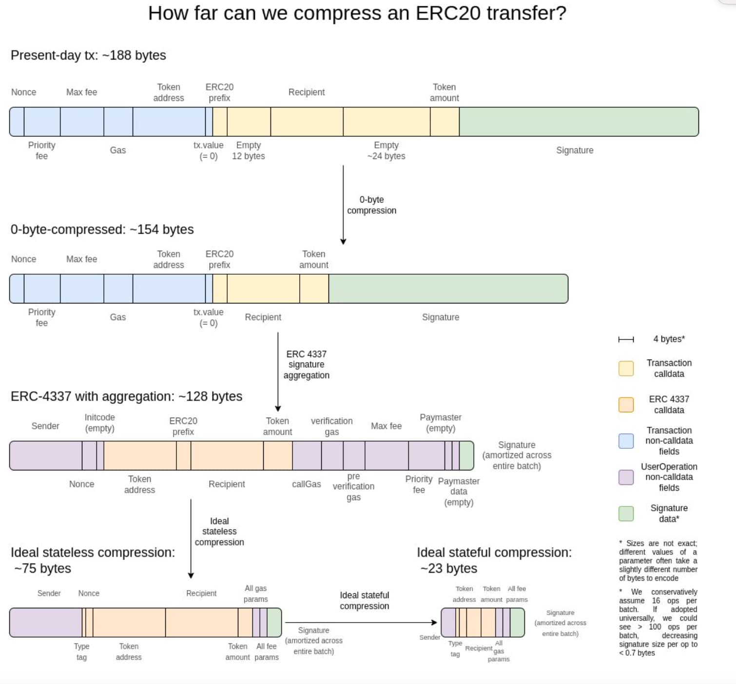 如果我们不仅能解决分子的问题,还能解决分母的问题,让每个 Rollup 中的交易在链上占用更少的字节,那会怎样?