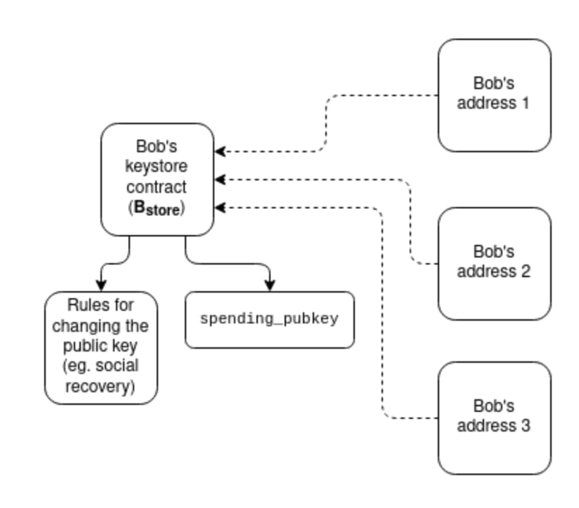 1、Keystore 钱包:如今,如果你想更新控制你的智能合约钱包的密钥,你必须在该钱包存在的所有 N 条链上都进行更新。Keystore 钱包是一种技术,它允许密钥只存在于一个地方(要么在 L1 上,要么以后可能在 L2 上),然后任何拥有钱包副本的 L2 都可以从中读取密钥。这意味着更新只需进行一次。为了提高效率,Keystore 钱包要求 L2 具有一种标准化的方式来无成本地读取 L1 上的信息;对此有两个提案,分别是 L1SLOAD 和 REMOTESTATICCALL。