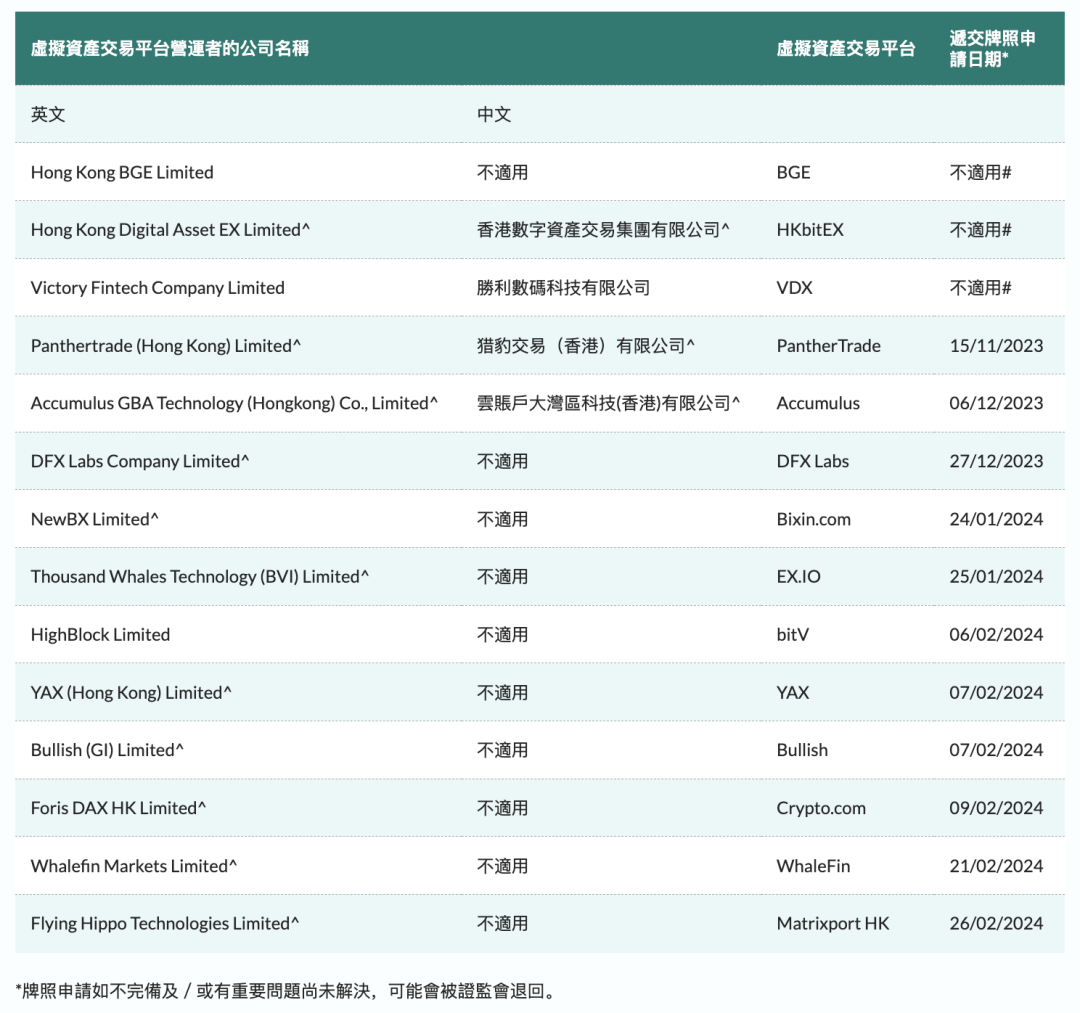 香港虚拟资产交易平台持牌概览