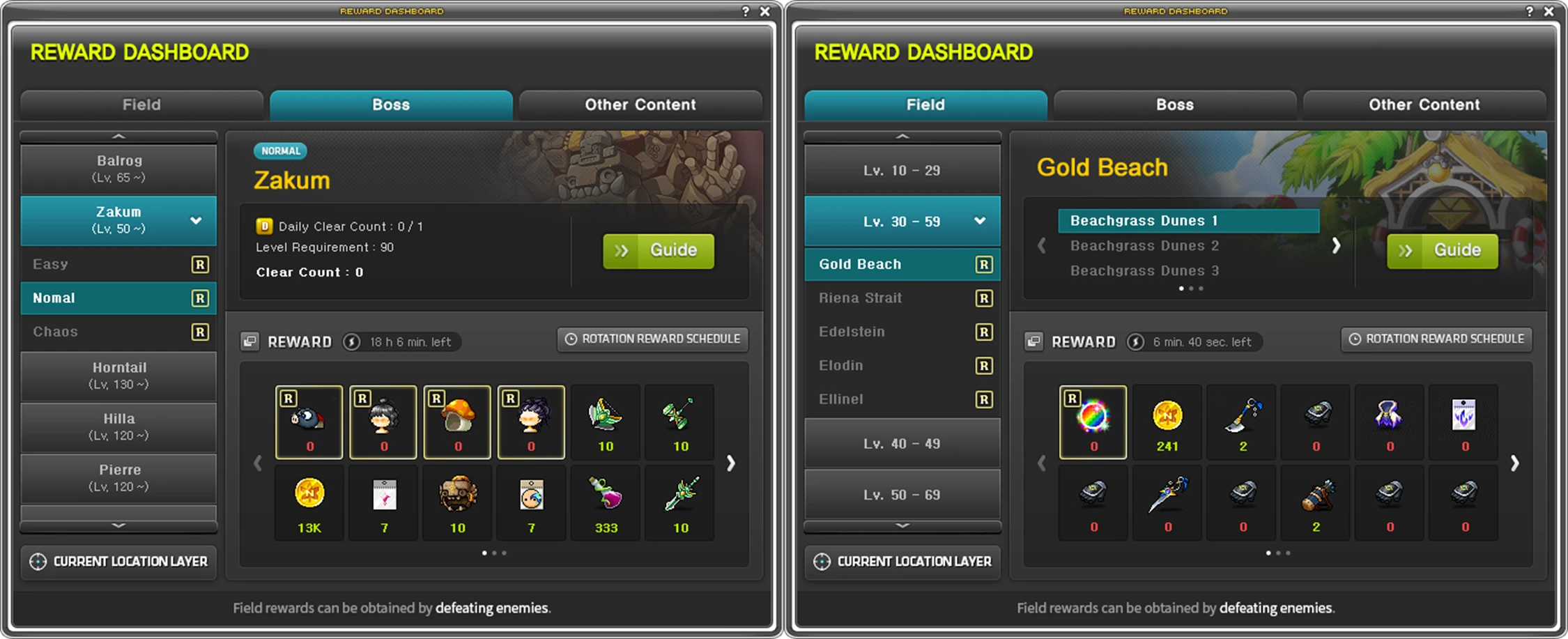 《冒险岛宇宙》的奖励面板