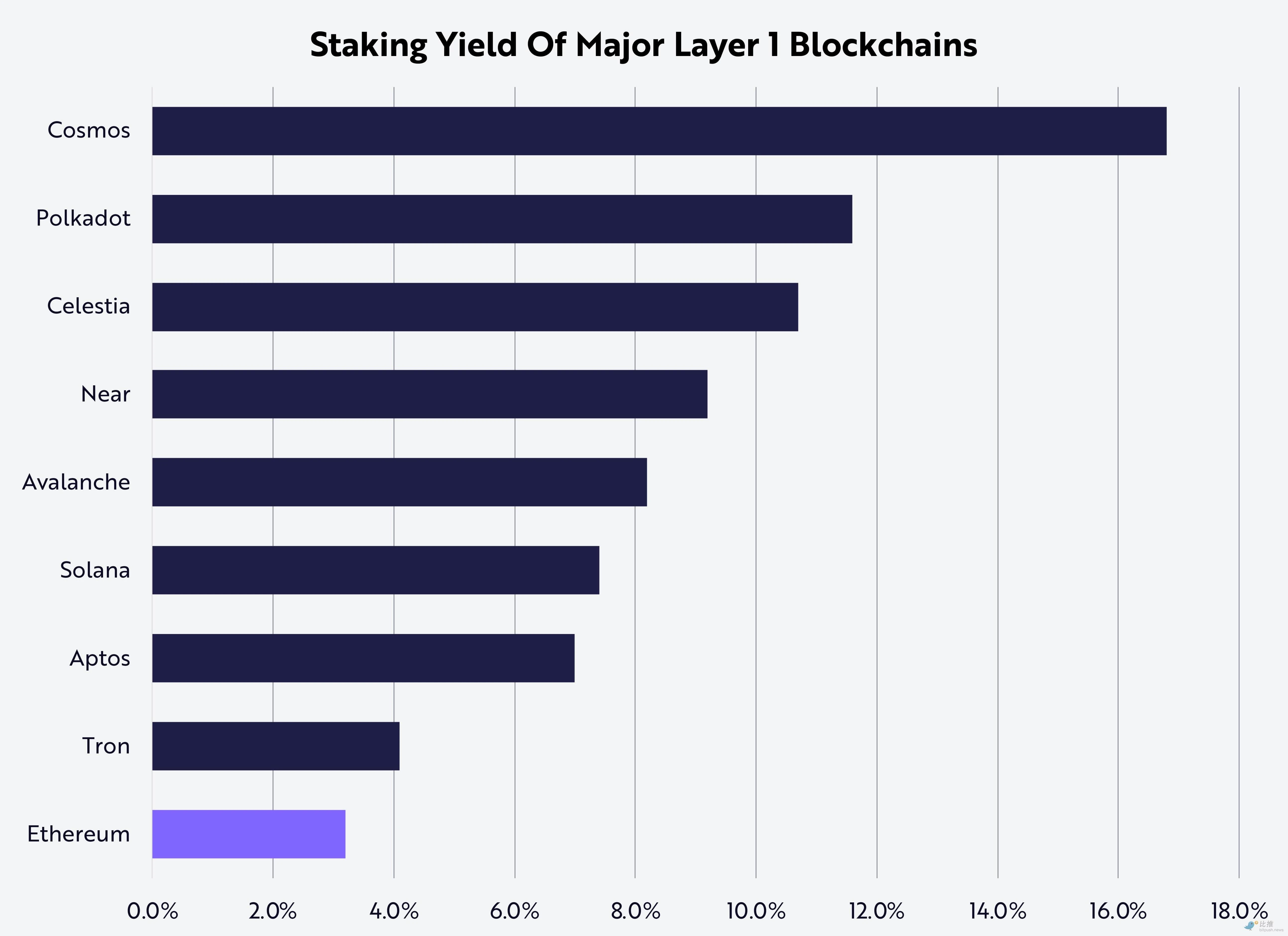 ETH 的质押收益率已经影响了其他智能合约账本,使其有别于比特币以外的其他数字资产。