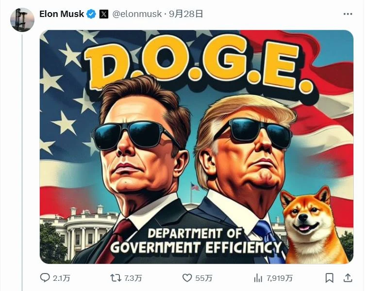 D.O.G.E 全称 Department Of Government Efficiency 意为「政府效率部门」,是马斯克在 8 月 13 号与特朗普在线对谈中提到的关于政府部门的一个规划设想。在对谈节目中,马斯克提到:“我认为我们需要一个政府效率委员会,来审视我们在哪些地方花钱是明智的,而哪些地方是不明智的”。