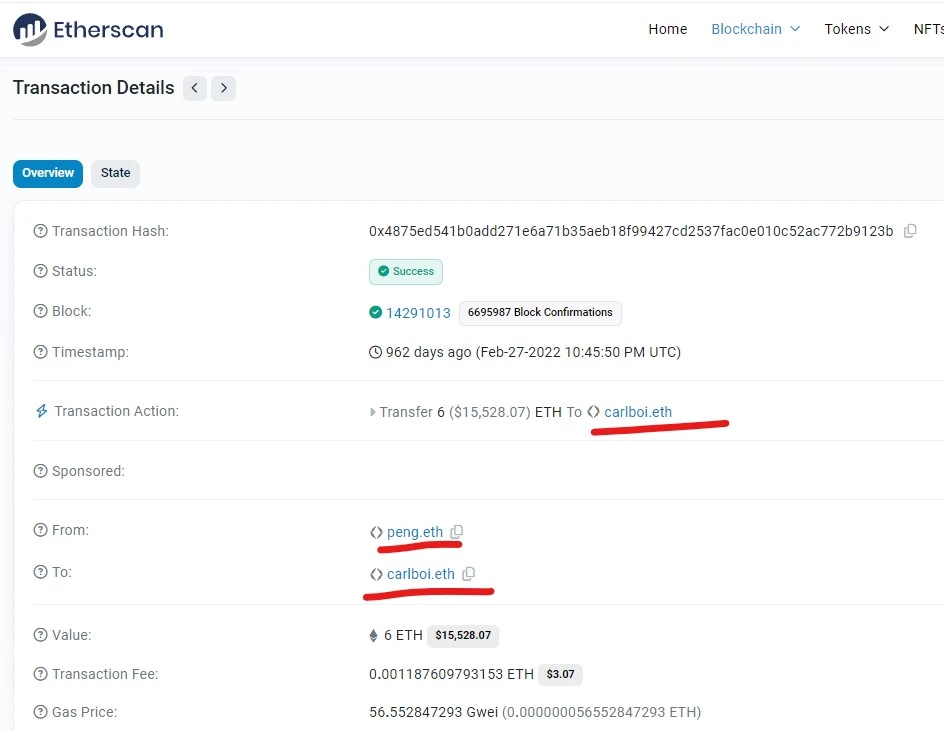 该地址并没有任何积分,但我们却可通过该地址追溯到第七个需要关注的地址 carlboi.eth(0x7440e1407f95F33206Fb72464A63cd54B2eE6282)。
