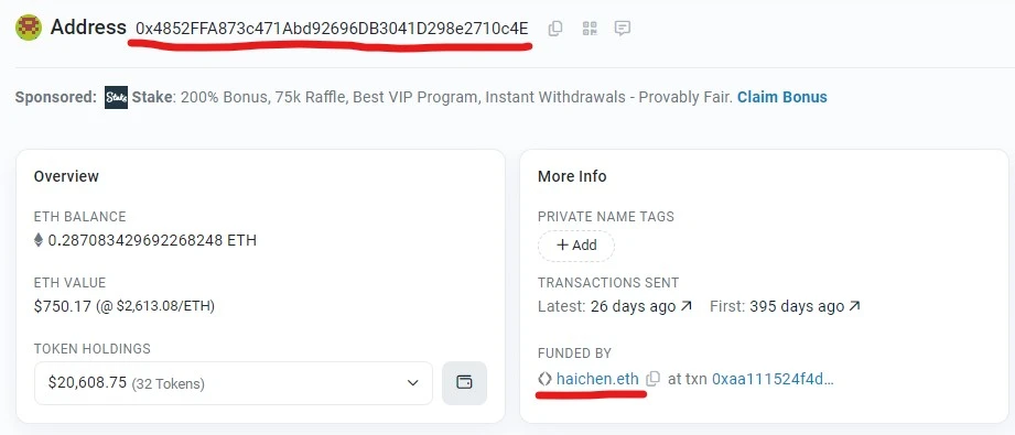 第三个需要关注的地址是 0x4852FFA873c471Abd92696DB3041D298e2710c4E。