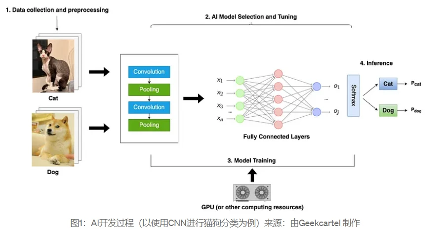 本文的重点在于使用区块链解决生产关系问题,AI 解决生产力问题的项目,这些项目本身提供 AI 产品,同时基于 Web3 经济模型作为生产关系工具,二者相辅相成。 我们将这类项目归类为 Web3-AI 赛道。为了使读者更好的理解 Web3-AI 赛道,Geekcartel 将展开介绍 AI 的开发过程和挑战,以及 Web3 和 AI 结合如何完美解决问题和创造新的应用场景。
