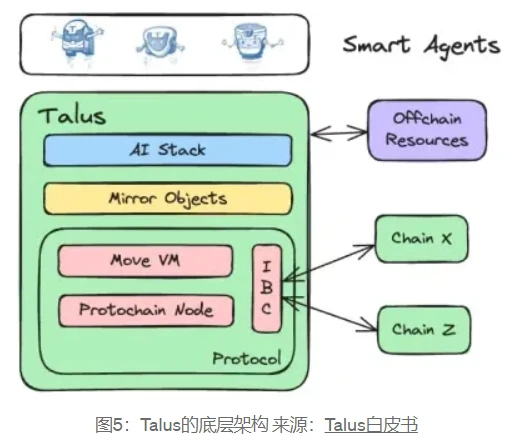 除了 Talus 提供的一系列智能代理的开发架构和基础设施,在 Talus 上构建的 AI 代理还支持多种类型的可验证 AI 推理(opML、zkML 等),确保 AI 推理的透明度和可信度。 Talus 专门为 AI 代理设计的一套设施可以实现链上和链下资源之间的多链交互和映射功能。