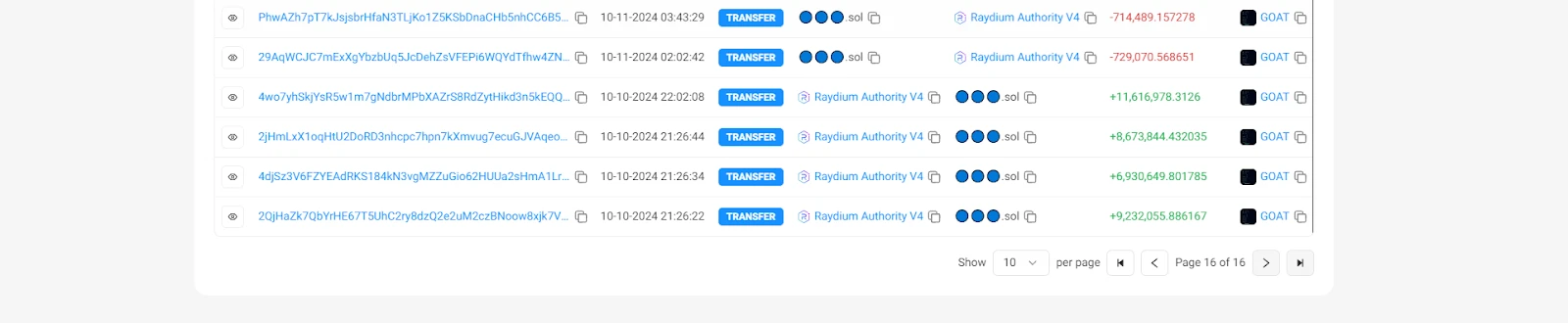 随后在价格距离成本拉升 30 倍左右时,HdxkiX 开始出货,分两笔将本金卖出。持仓时间约为 4 小时。后续陆陆续续卖出,截至 10 月 17 日,账户上还剩余价值约 46 万美元的 GOAT,如果以他最初买入的数量持仓到最后最高可获利 1036 万美元,获利倍数 1711 倍。