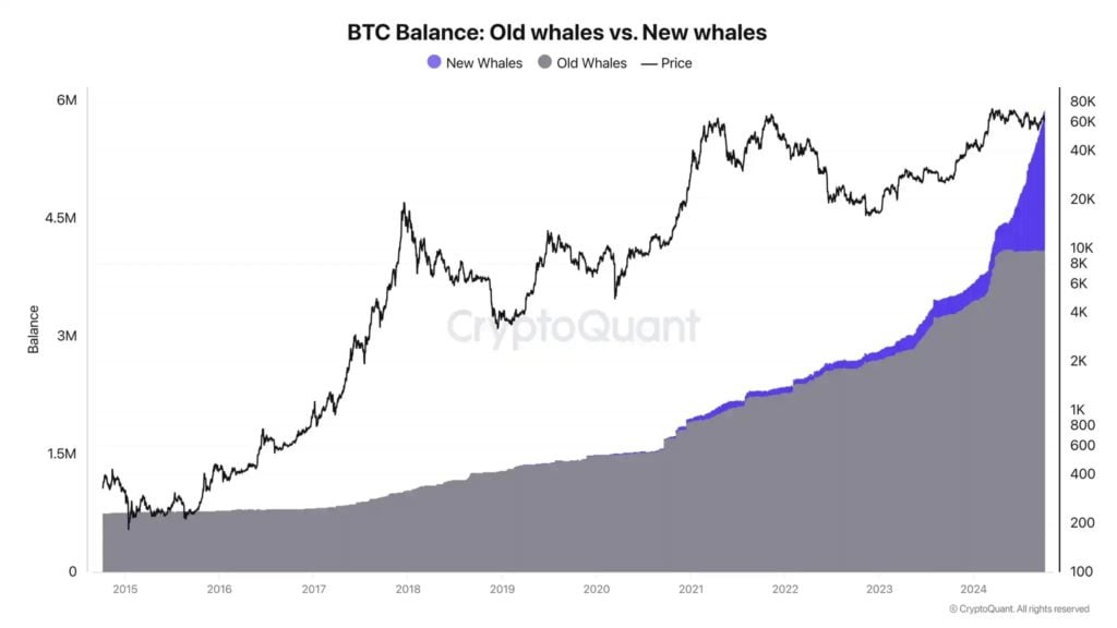 值得一提的是,根据 CryptoQuant 资料显示,新鲸鱼地址正在近乎疯狂的囤积 BTC。创办人 Ki Young Ju 表示,BTC 市场从未见过这样的囤币行为。一些人认为新鲸鱼主要是由于 ETF 流入产生的,但近期的囤积行为表明这些新鲸鱼地址与 ETF 几乎没有相关性。