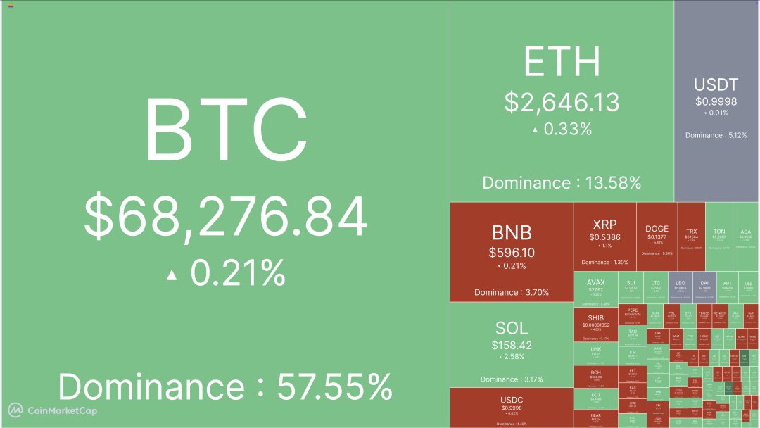 图片说明:加密市场市值热力图,图片来源:CoinMarketCap