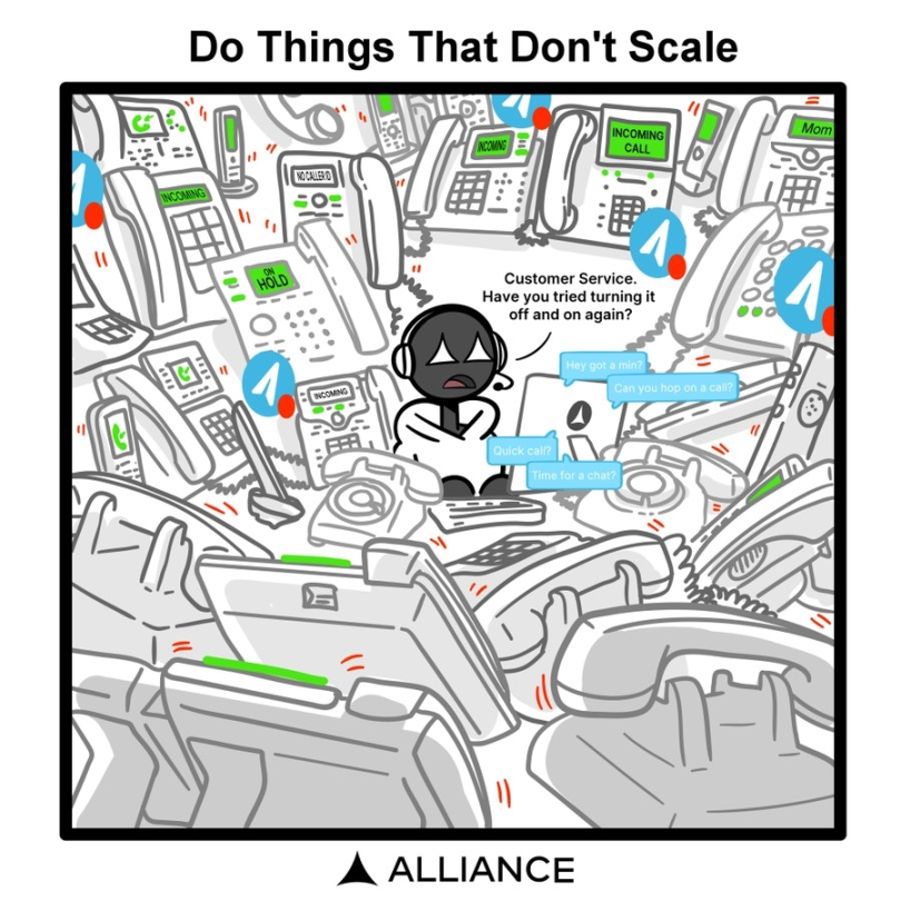 早期阶段,个性化接触比构建完整产品更重要。直接与用户互动,亲自处理客户支持,并手动执行将来会自动化的交易。这些无法规模化的努力有助于你与早期用户建立强大的关系,并深入了解他们的需求和行为。这种方式不仅能让你快速构建和发布,更重要的是,它能让产品尽早交付到用户手中。