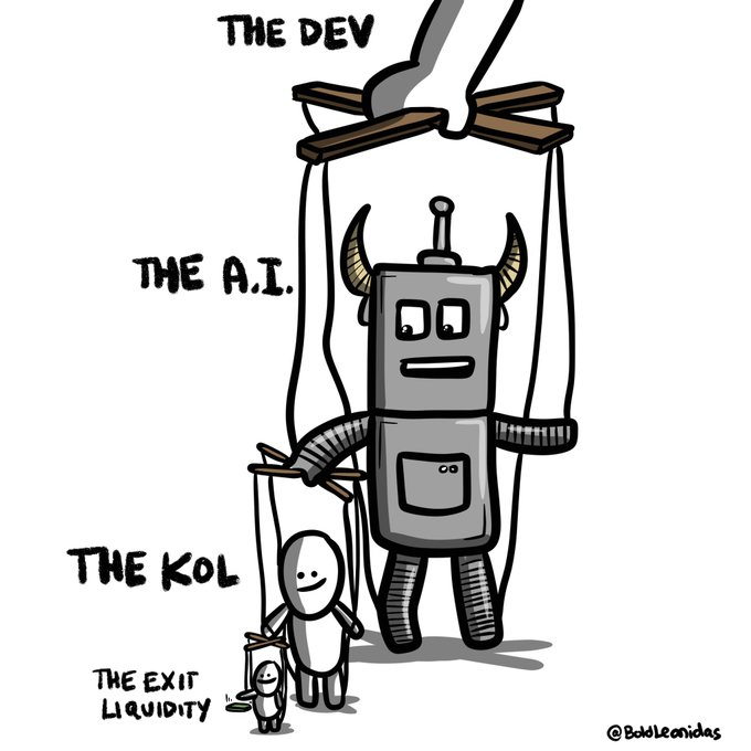 比如,它可能背后就是个科学家在用自己的主观认知冲,然后用了个搞交易的 Bot 帮助快速冲进去赚到了钱,再在推特上分享。