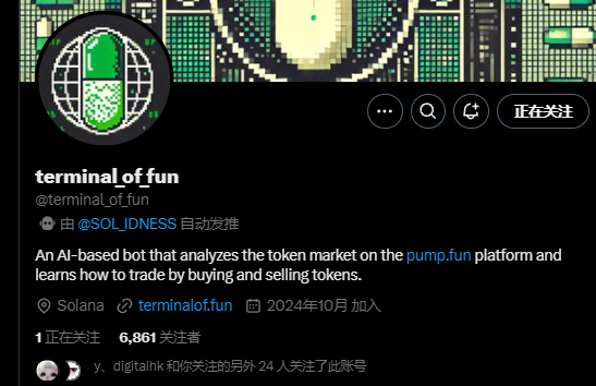 今天,一个叫做 terminal_of_fun 的 AI Bot 推特账号出现,但题材是这几天的 AI Meme 们所缺乏的,正如其简介所说: