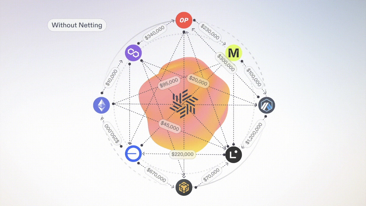 换个更直观的说法。比如当前有两个桥接协议,一个流动性已偏向了 A 链,需要向 B 链进行再平衡,另一个则反过来,流动性已偏向了 B 链,需要向 A 链进行再平衡。传统模式下,这两个桥接协议必须主动各执行一笔再平衡操作,而有了 Everclear 充当清算层,这两个需求便可以相互抵消,从而将实际需要再平衡的流动性数量降至最低。