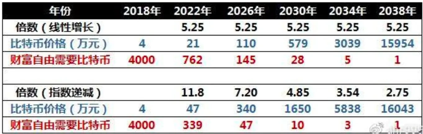 以上预测是在 2018 年,2021 年底的确比特币的价格到达过 $ 64, 863, 约合 45 万 RMB,和九神的预测还挺接近。这个周期会达到表格裡面的 340 万 RMB / 50 万美金吗?