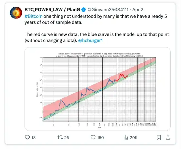 这个模型的强大之处在于,提出之后 5 年的资料(2019.9-2024.9)都还在其预测范围内,看来距离 10 万美元应该不远了。