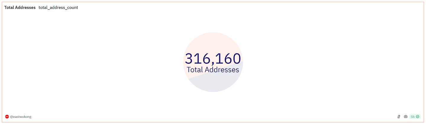 10 月 18 日,Wukong 发起了 Solana 链上的零转空投活动,推出 48 小时,参与转账的地址达到了 316, 160 人,每位参与者都会获得 288 枚代币的空投奖励。