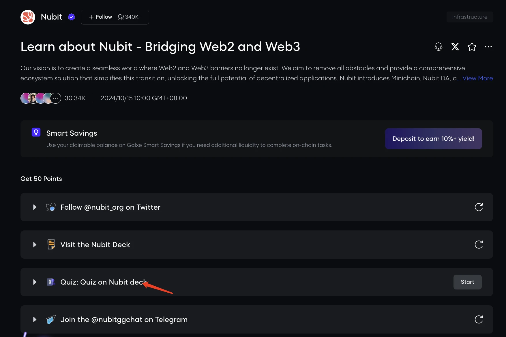 除测试网激励活动外,Nubit 在 Galxe 上出了新任务,值得参与。